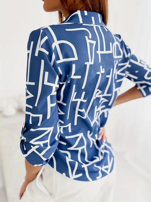 Camicetta donna elegante 2024 primavera e autunno temperamento .Top manica lunga stampa a righe camicia tascabile Slim Fit da ufficio