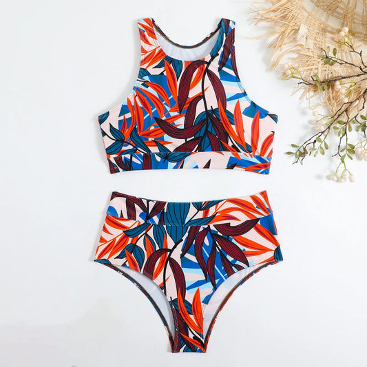 Costume da bagno donna canotta tinta unita costume da bagno donna a vita alta diviso in due pezzi